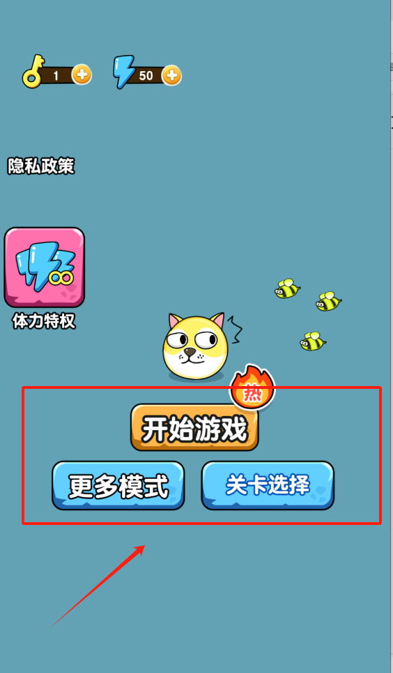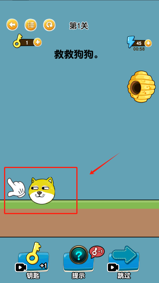 3、点击柴犬头像开始第1关任务,用钥匙救狗狗,倒计时结束前完成目标即可过关。