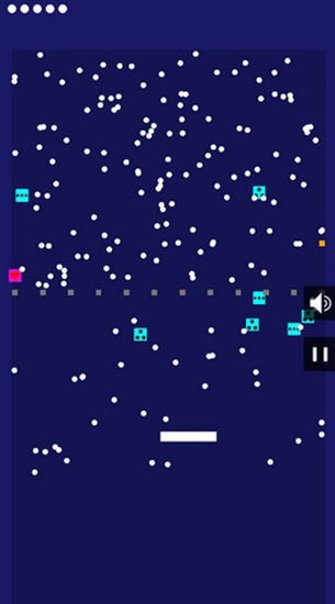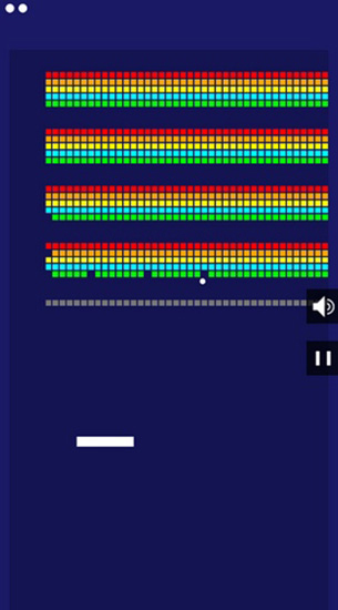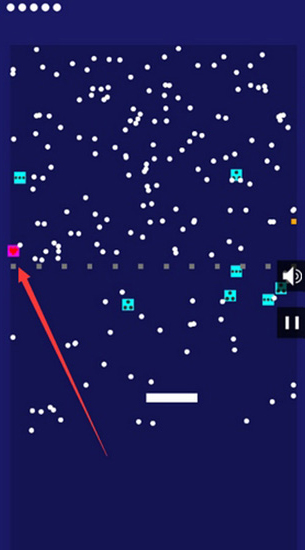 在玩这个游戏时,玩家要操控一条横条,让小白球反弹,进而击碎一块块砖块。那怎样才能打完所有方块呢?诀窍是将小白球打到两排方块中间,就像下图这样,这样球就不会掉落,会一直在上方反弹。