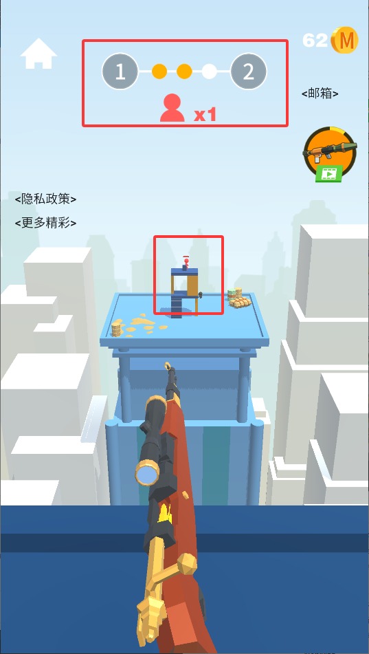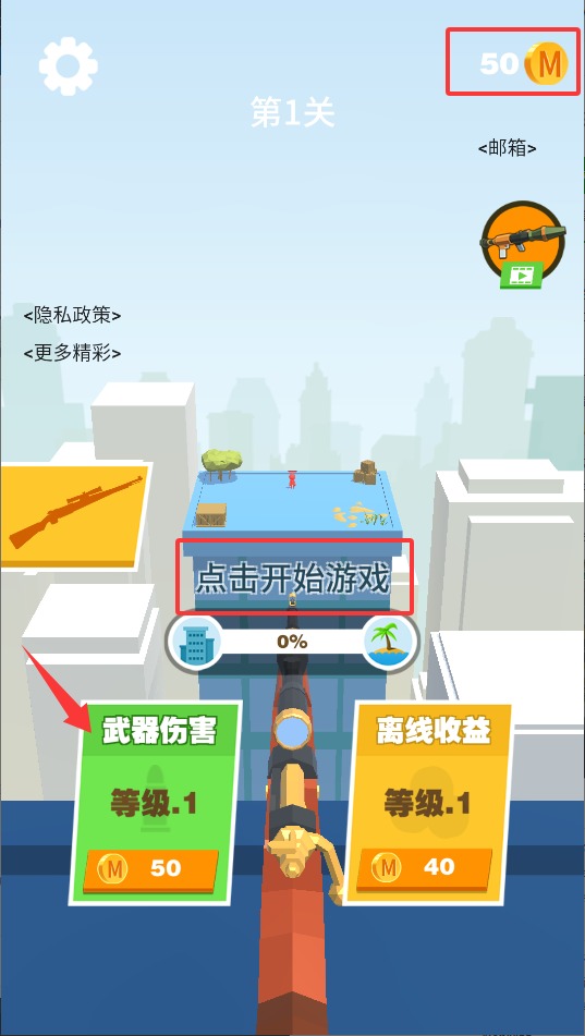 1进入游戏后,点击开始按钮,通过完成最初的关卡可以获得金币奖励,这些金币可以用来增强枪械的威力或者解锁更强大的装备。