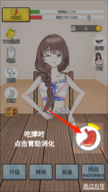 3、右侧实时显示胃部状态图示,当饱腹度超标时点击胃部区域触发消化动画。消化完成后可继续进食挑战。