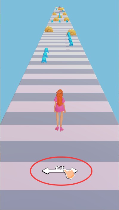 2、通过手指在屏幕上左右滑动来控制角色移动方向,注意收集沿途的金色发卡可以获得额外长度加成。