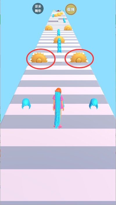 2、巧妙设计的障碍物系统挑战玩家的反应速度。锯齿、剪刀等陷阱会随机出现,需要灵活应对才能保住辛苦留长的秀发。