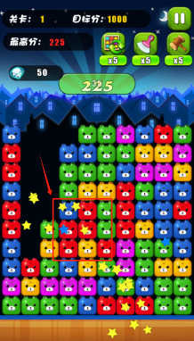 1、基础消除步骤:仔细观察方块的排列,点击两个或更多相邻且颜色相同的熊熊方块来进行消除,精确规划每一步行动,以获得最高分。