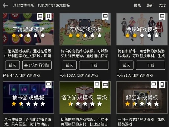 4、平台提供了丰富多样的游戏模板,用户既可以直接拿来使用,也能够依据自身实际需求加以修改,极大地降低了游戏制作的起步门槛。