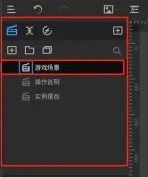 2、开启模板,第一步先查看左边场景库中的场景,仅需在游戏场景中进行操作即可。