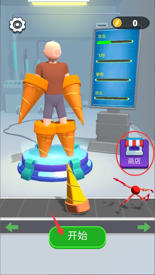 1点击游戏界面上的开始按钮进入游戏,在商店里你可以选择多种机械部件,根据关卡需求挑选合适的装备进行组合。
