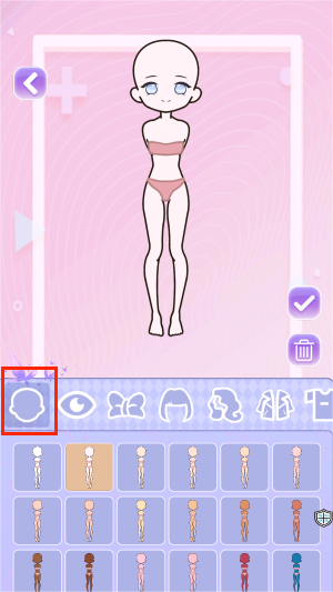 2、进入角色编辑页面后,点击面部区域从调色盘中选取心仪的肌肤颜色。