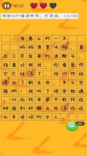 2、有些错误一眼就能找到,但是个别的字隐藏得很深,读起来反而更加通顺,考验眼力与基础语文水平。