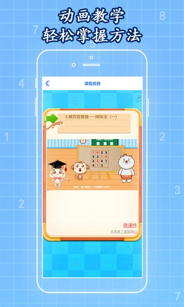 2、看完视频后,可以从四宫格逐步过渡到九宫格,并搭配有趣的动物贴纸,即使是数学新手也能乐在其中。