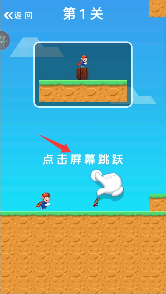 2、遇到障碍时轻触屏幕使角色跳跃,注意把握点击时机避开陷阱。连续点击可触发二段跳,跨越更高地形。