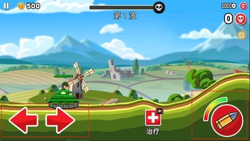 2、左边是移动摇杆,右边是开火及换弹,上方则是敌方的波次信息。