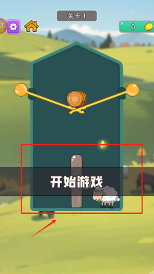 2、进入关卡1,草地场景,点击开始游戏按钮,操控小羊跳过木杆草垛。