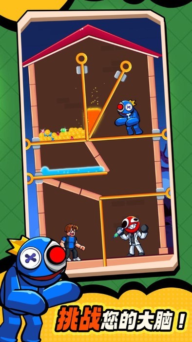 《彩虹朋友拉针解谜》是一款独具创意的物理解谜游戏。在游戏中,玩家需要通过精确地拔出插销来解救被困的角色。这款游戏采用了色彩鲜艳的卡通风格,每一关都精心设计了各种机关和陷阱。玩家必须仔细观察场景中发生的物理连锁反应,并在合适的时机拔出关键插销,才能顺利完成救援任务。