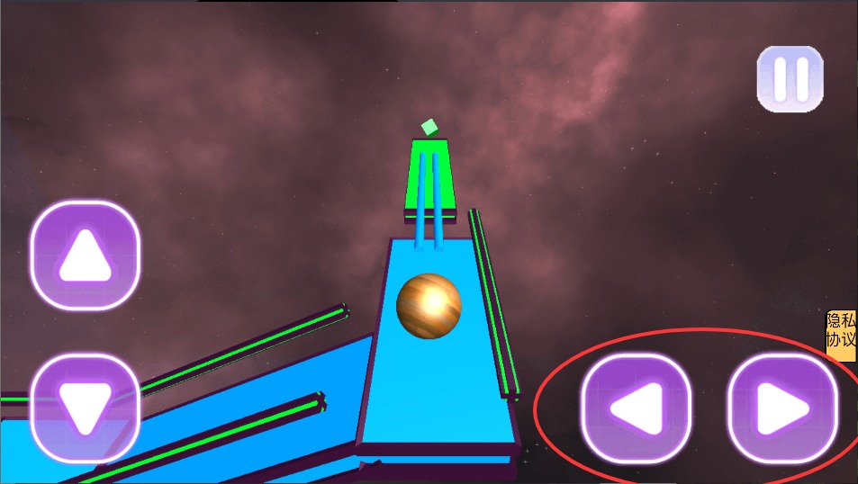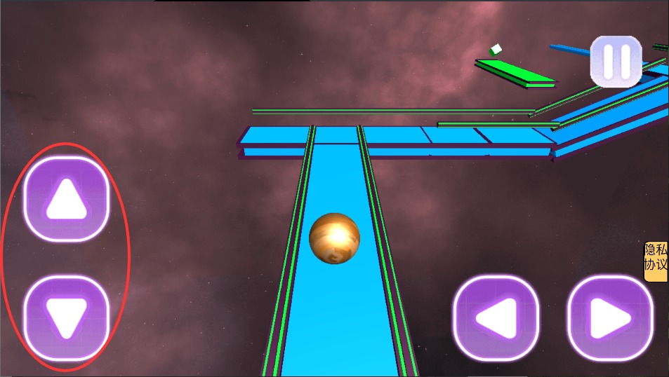 2、使用左手操控屏幕左下角的移动摇杆,通过前后推动可以使球体加速或减速,同时要注意躲避赛道上的障碍物和陷阱。