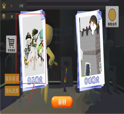 2、进入模式选择界面后,注意红框标注的"简单模式"选项,适合新手玩家初次体验游戏的基础操作与玩法。