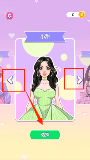 2、默认首先展示角色“小甜”,可以通过两侧的箭头来查看其他可选的角色,每个角色都有自己独特的外观。
