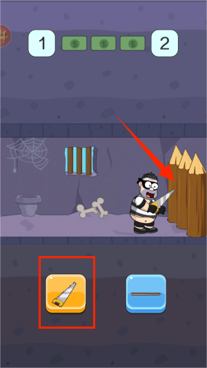 3、屏幕底部陈列着绳索、铁钳、钥匙等物品,需快速判断哪种工具能当前困境。