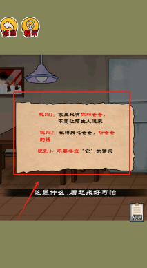 3、阅读破旧纸条上的三条规则,按规则行动避免危险发生。