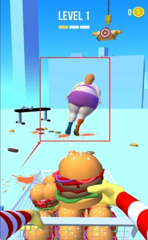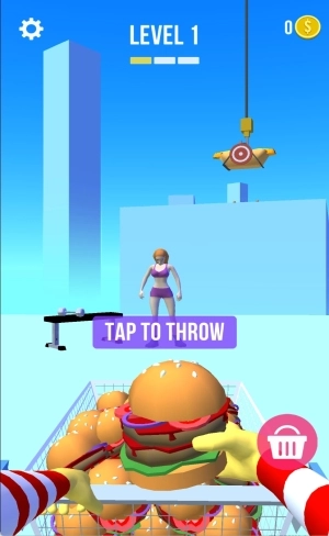 2、进入第一关后观察上方移动的吊钩,把握时机将手中汉堡准确投掷到移动中的目标人物身上完成命中。