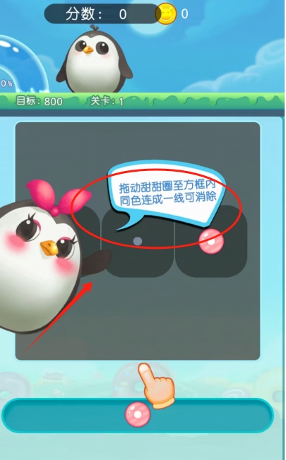 1、开始游戏,点击相同色块,体验经典三消的爽快感。