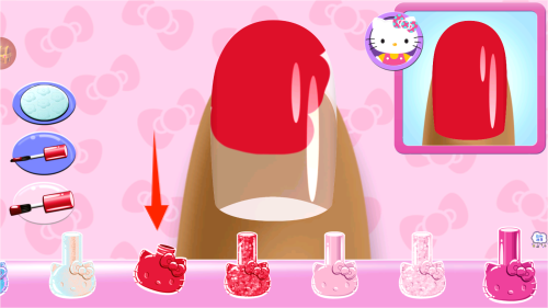 3、从调色板挑选心仪的基础甲油颜色,使用涂抹工具为虚拟指甲上色,操作过程模拟真实美甲体验。