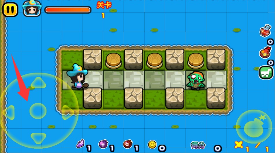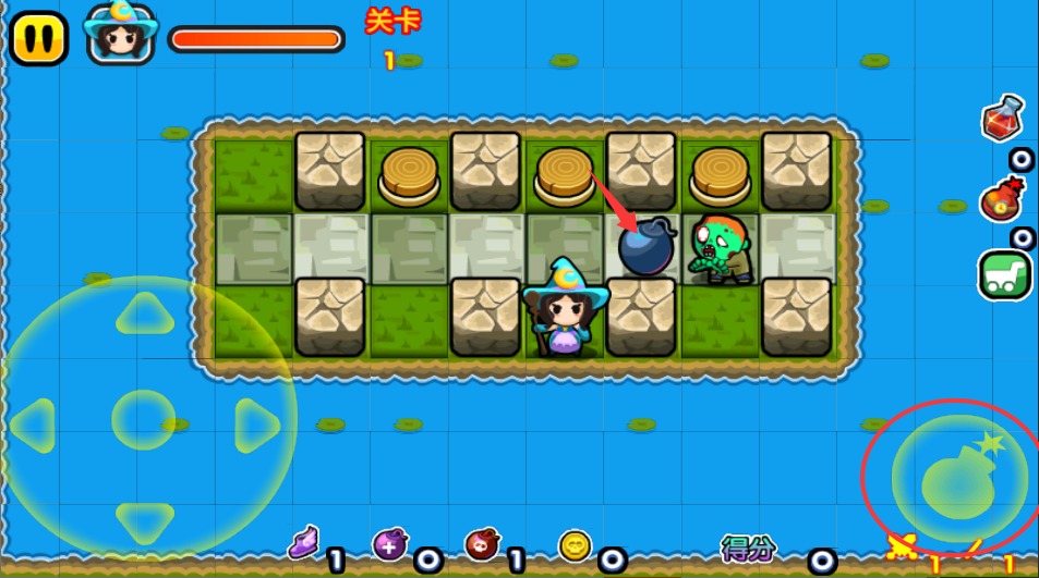 2、遇到怪物时点击右侧炸弹按钮进行放置,爆炸会消灭范围内的敌人,注意把握投掷时机和爆炸范围。