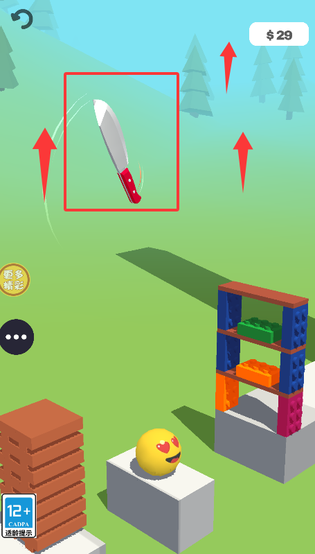 玩《飞刀我最强》这款游戏特别过瘾!操控小刀一路向前冲,碰到什么就砍什么,不管是木板还是箱子,都能一分为二,解压效果非常好。游戏操作简单,只需滑动屏幕即可,但随着跑酷过程中的障碍物逐渐增多,游戏越来越刺激。关卡设计非常有趣,让人一玩就停不下来。游戏画面简洁明快,音效也很带感,非常适合在碎片时间里来上几局。保证让你爱不释手。