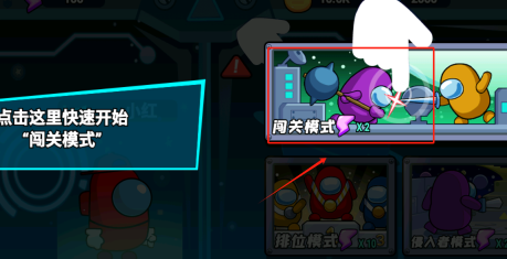 1、在游戏界面的蓝色框内点击“这里快速开始”按钮,就可以进入闯关模式。