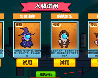 2、在人物试用界面,点击黄色试用按钮可体验当前展示的传说品质角色。