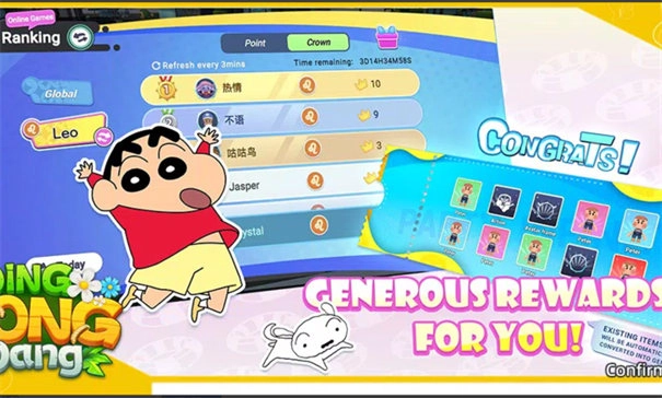 《蜡笔小新叮当当国际服》是一款获得“蜡笔小新动画片”官方授权的多人竞技休闲游戏,也被称为蜡笔小新DingDongDong。游戏中,你将见到许多熟悉的动画角色,例如风间、妮妮、小葵,甚至还有小白。玩家可以在各种不同的地图上进行竞赛和探险,结合了闯关、解谜以及跑酷等多种游戏模式。此外,该游戏还支持最多四人在线联机游玩,邀请你的朋友们一起来享受愉快的游戏时光吧。
