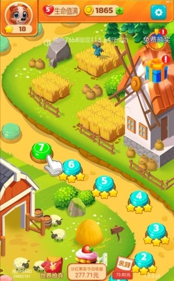 《美味农场消消乐红包版》是一款以消消乐为核心玩法的模拟竞技类游戏,操作方式十分简单:玩家每通过一个关卡,就能解锁一项农场建设的目标;游戏内所有的材料与道具,均需通过推进剧情来逐步获取。最终目标是打造出强大且完善的农场,而以剧情驱动的挑战模式颇具新意,能让玩家在游玩过程中充分体验到乐趣。