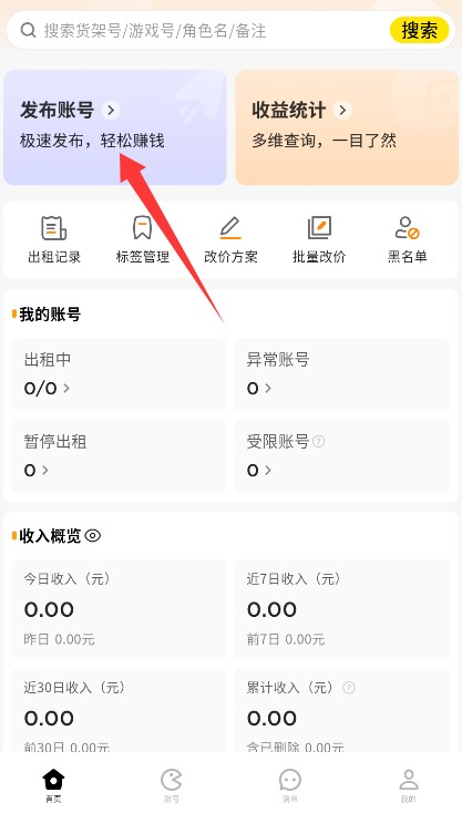 1、下载注册后进入"我要出租"界面,选择对应游戏品类。系统自动识别账号价值区间,推荐合理出租价格。