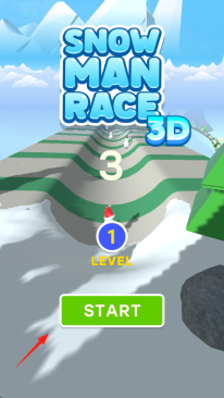 1、开始时请点击“START”,进入“LEVEL1”的雪地赛道,操控戴着红帽子的雪人,准备与其他雪人进行比赛。