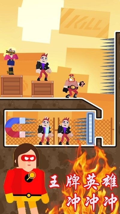 《王牌英雄冲冲冲》是一款融合了动作和策略元素的横版闯关游戏。游戏采用鲜明的卡通渲染风格,玩家可以操控各具特色的英雄角色,在充满挑战的竞技场中进行对决。独特的“出屏即败”机制要求玩家在击败对手的同时,必须精确控制自己的移动范围。