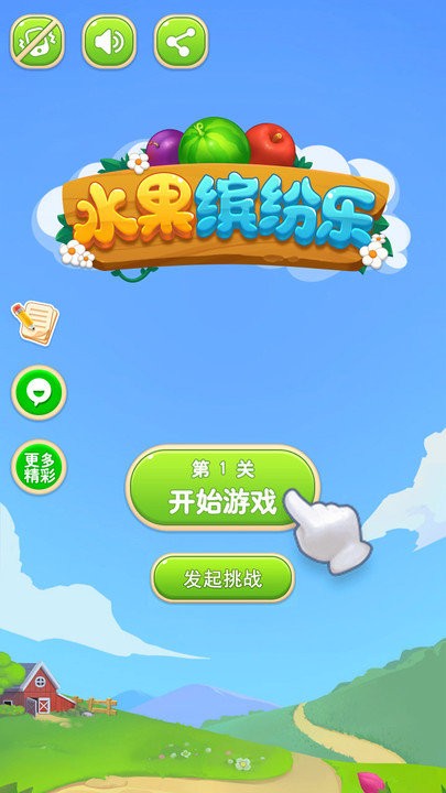 1点击主界面中心的开始按钮,随即播放出欢快的背景音乐,水果主题的消除游戏世界立刻呈现在眼前。