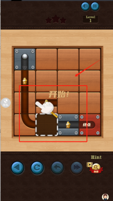 2、看关卡布局,用方向键移动木块,点Hint可获免费提示助过关。