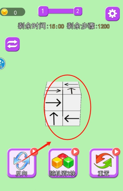 1、智能箭头系统:每个方块标注不同方向箭头,玩家需要观察箭头走向制定最优消除路径。