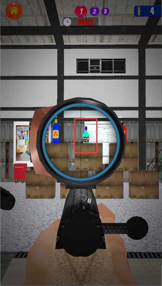 3、稳定准星后松开手指完成射击,准确击碎所有瓶子即可通关,连续爆头命中可获得额外分数奖励。