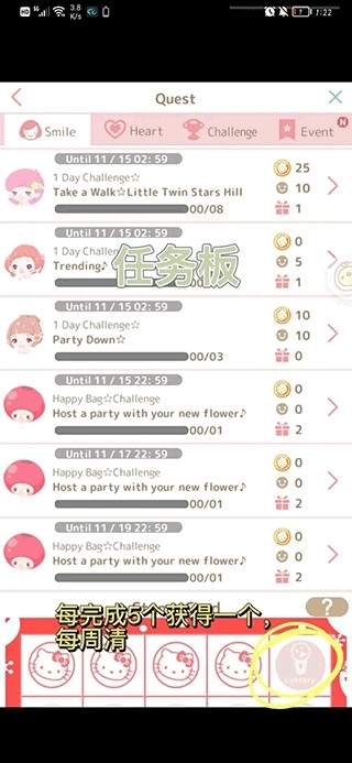 5、点击guest,你可以进入到任务栏,每天都有很多任务,注意每完成5个任务获得一个每周清。
