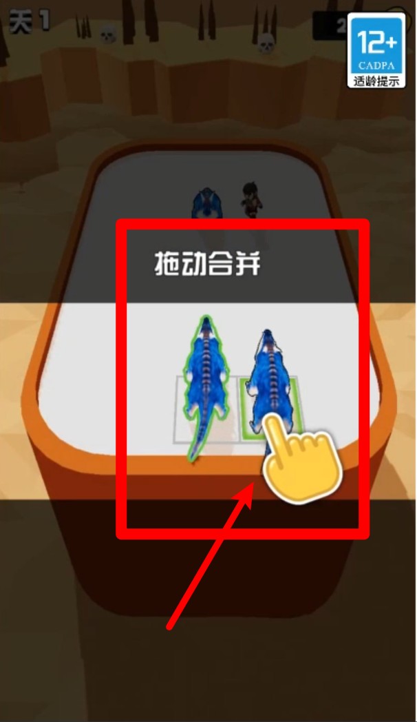 1.拖动合成升级:同级恐龙拖动合体即可升级新形态,合成过程极简流畅,不断探索进化可能性,带来持续性的成长期待感。