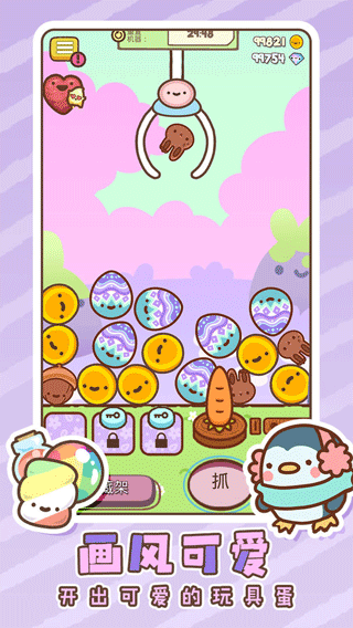 1、整体画风十分可爱,玩的过程畅快淋漓,操控娃娃机轻松便捷,能顺利抓到娃娃。