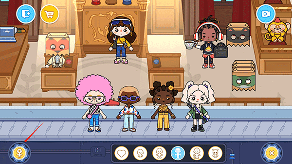 2、在房间内你可以自由的布置房间布局,也可以点击右下角角色图标添加新的角色人物