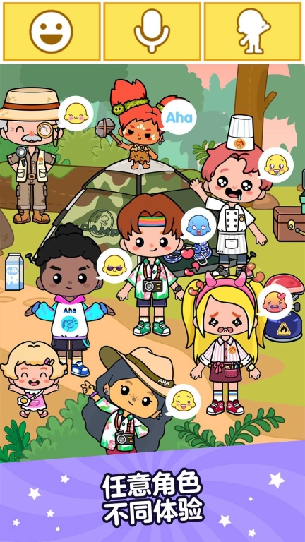 在Aha World中,到处都是能由你掌控的居民!录制他们的声音,挑选他们的表情,进而演绎你的故事。在这里,你能化身为啊哈世界里的任何角色!