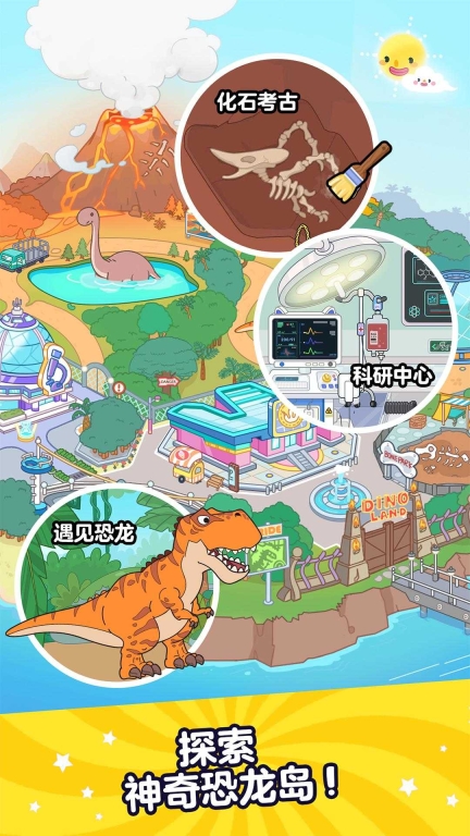 在雨林、海洋以及城市里持续展开冒险。捡起你所发现的每一件物品,并与之进行互动。第一步,把恐龙送往城镇,亦或点击太阳以操控天气!