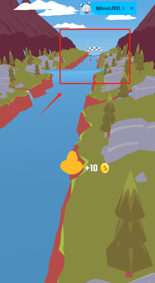 3、冲刺到达终点线,收集金币奖励,避开扣分障碍物。