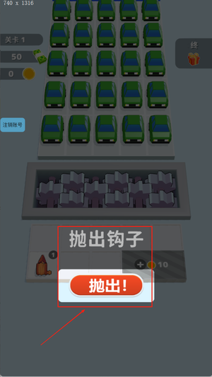 2、屏幕下侧为可以合成钩子,最下侧是发射按钮,长按可控制力度,松开即释放钩索完成拖拽操作。