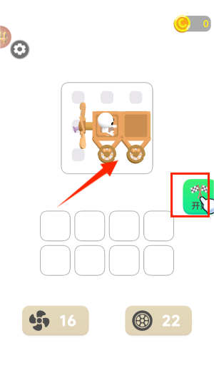 3、当所有部件都正确安装完毕后,启动按钮会发出荧光提示,此时点击即可驾驶这辆手工木车,在崎岖的赛道上开始你的闯关冒险。
