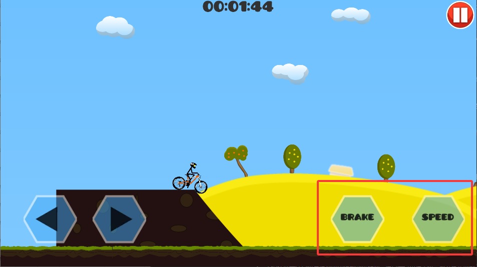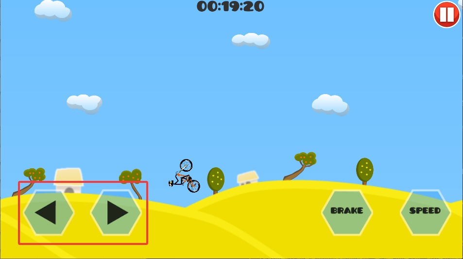3、左手点击左侧区域调整车头角度,上抬前轮跨越障碍,下压车头稳定落地,配合油门完成特技动作。