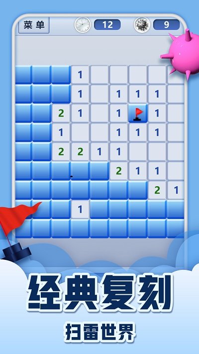 4、多人竞技模式突破常规,支持异步对战和实时排行榜。玩家可以上传精彩的对局录像,让全球玩家共同观看并学习高级扫雷技巧。
