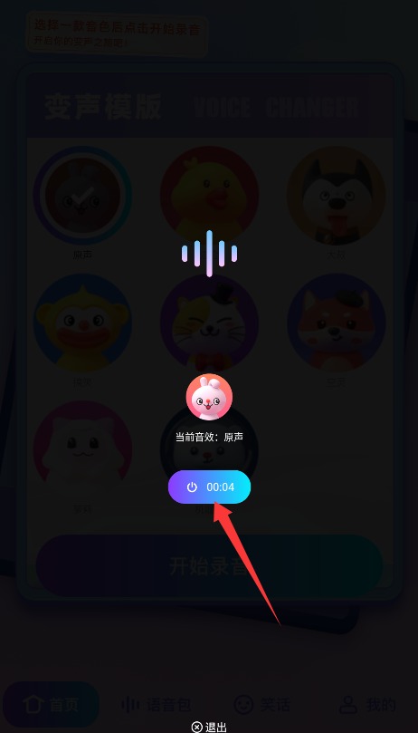 1、启动妙趣变声器APP,在首页选择喜欢的变声效果,点击开始录音按钮准备开始。